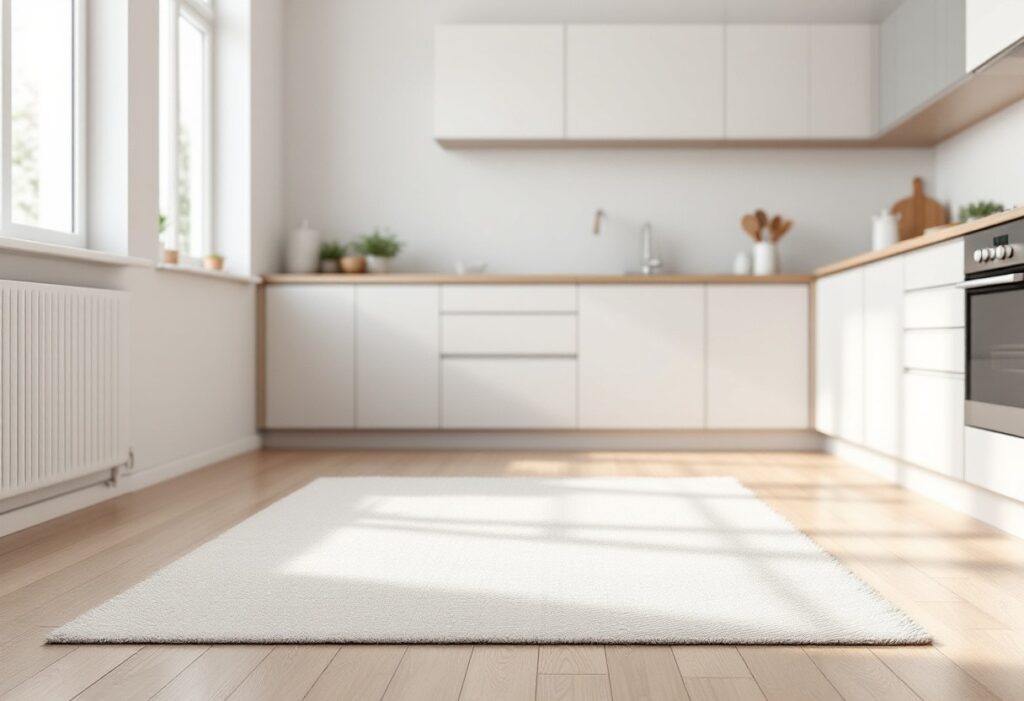 Pour choisir la meilleure teinte de tapis, examinez l’éclairage naturel de votre cuisine. Une pièce baignée de lumière naturelle profitera énormément de l’ajout d’un tapis aux tons doux et clairs. À l’inverse, dans une cuisine moins lumineuse, un tapis légèrement plus sombre ou aux teintes chaudes peut apporter le contraste nécessaire sans peser sur l’atmosphère générale.