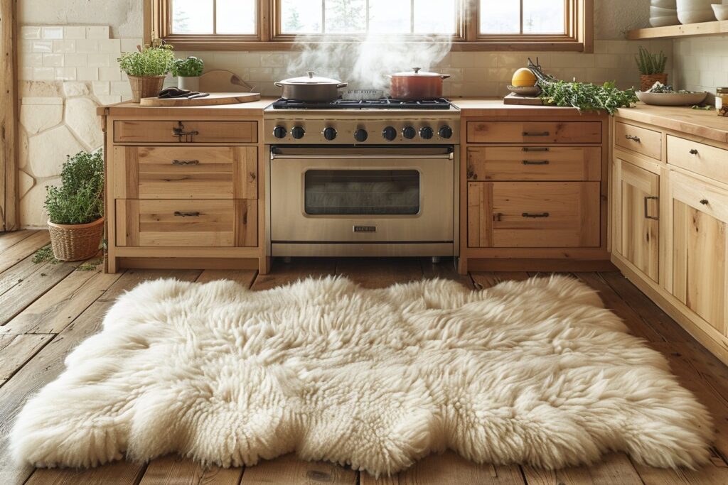 - Confort supplémentaire : Un tapis de cuisine en laine procure un confort supérieur, grâce à ses fibres fines et douces qui offrent une sensation agréable sous les pieds. Ce confort permet de soulager la fatigue lorsqu’on travaille debout pendant de longues périodes.